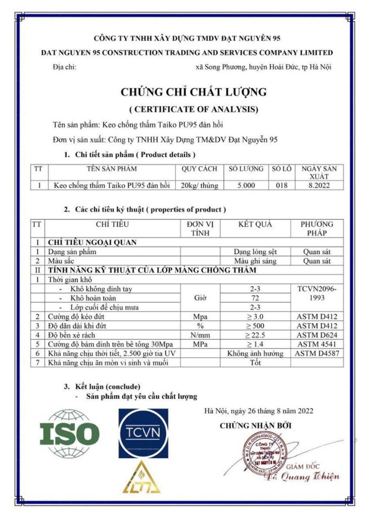 Công ty Cổ phần Taikomi Việt Nam chuyên phân phối và thi công sơn chống thấm Taiko – sản phẩm công nghệ Nhật Bản hiện đại. Với khả năng bám dính vượt trội, chống thấm hiệu quả, kháng kiềm và chống nứt tối ưu, Taiko là lựa chọn tin cậy cho công trình dân dụng và công nghiệp. Taikomi cam kết mang đến sản phẩm chính hãng, dịch vụ hỗ trợ tận tâm cùng hệ thống phân phối rộng khắp, giúp công trình bền đẹp và an toàn theo thời gian.