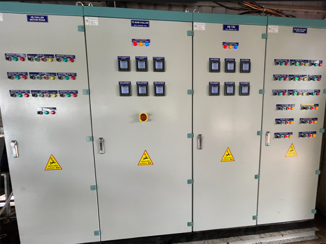 • Hệ thống điều khiển thông minh: Tích hợp bộ điều khiển biến tần (VFD) cho bơm nước lạnh, bơm nước giải nhiệt và quạt tháp giải nhiệt để điều chỉnh lưu lượng theo tải thực tế, tiết kiệm điện năng.