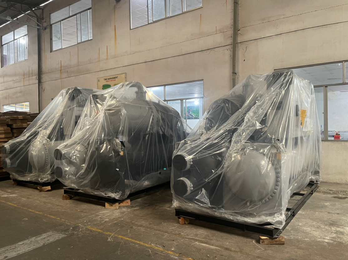 • Chiller trục vít hoặc ly tâm: Phù hợp cho công suất lớn, hoạt động liên tục. Chiller ly tâm thường được ưu tiên cho các nhà máy có nhu cầu làm lạnh rất lớn và yêu cầu hiệu suất cao.
